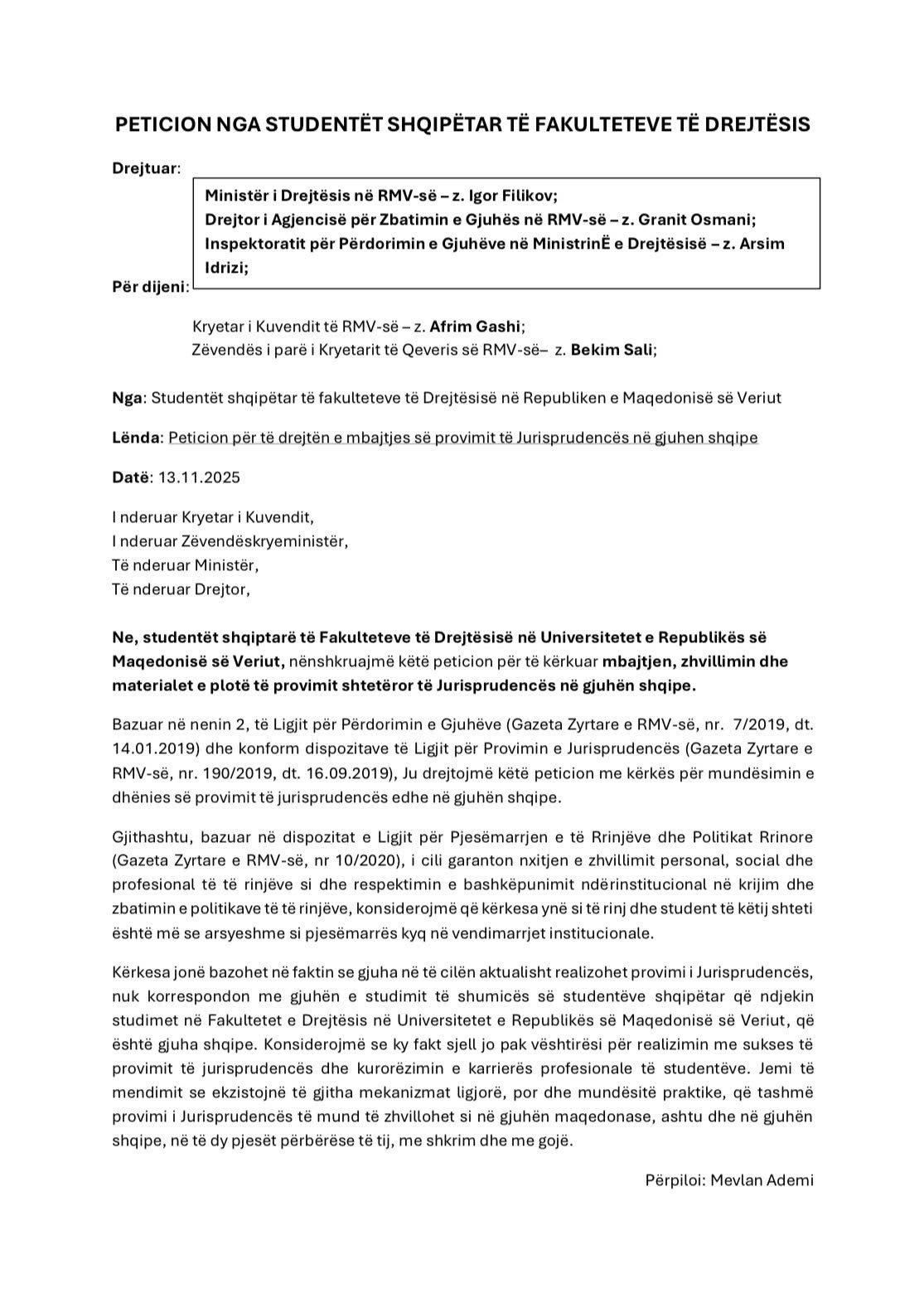 ASH-Taravari: Përkrahim studentët për mbajtjen e provimit të jurisprudencës në gjuhën shqipe