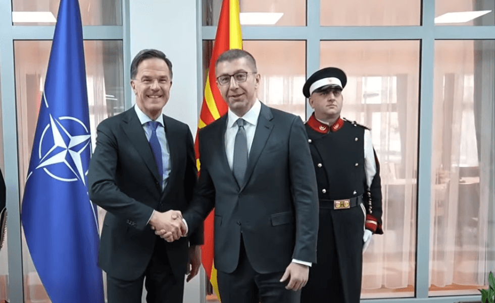 Sekretari i Përgjithshëm i NATO-s, Mark Rutte, gjatë vizitës së tij në Maqedoninë e Veriut, u takua me kryeministrin Hristijan Mickoski. Mickoski njoftoi në Facebook se i kishte thënë Ruttes se Maqedo...