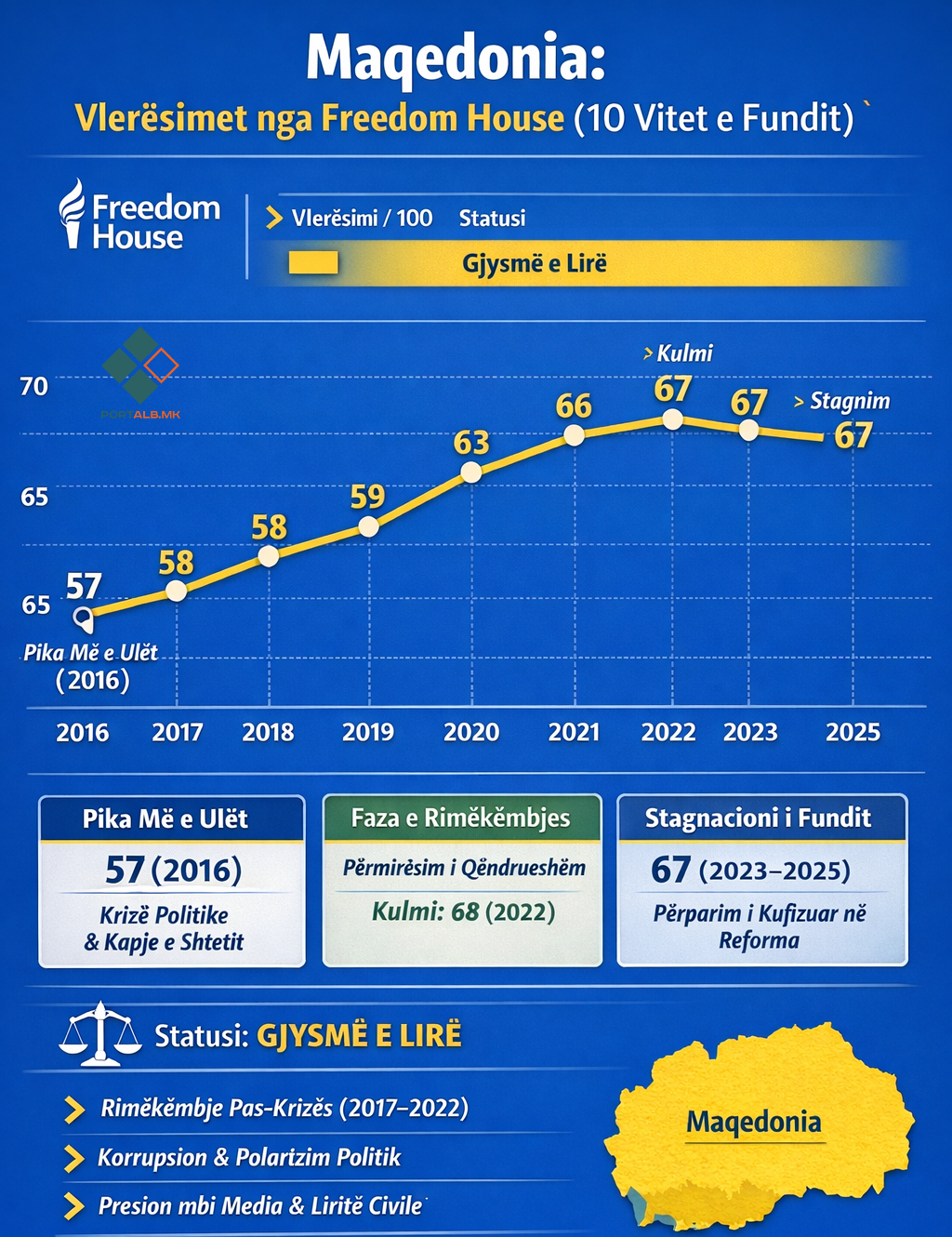 Sa i përket lirive civile e të drejtave politike, Maqedonia “pjesërisht e lirë”