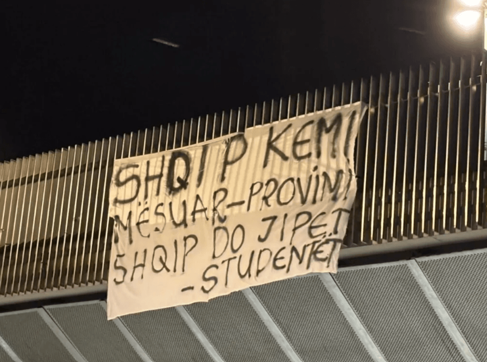 “Shqip kemi mësuar, shqip do testoemi” – studentët ‘pushtojnë’ Shkupin me pankarta