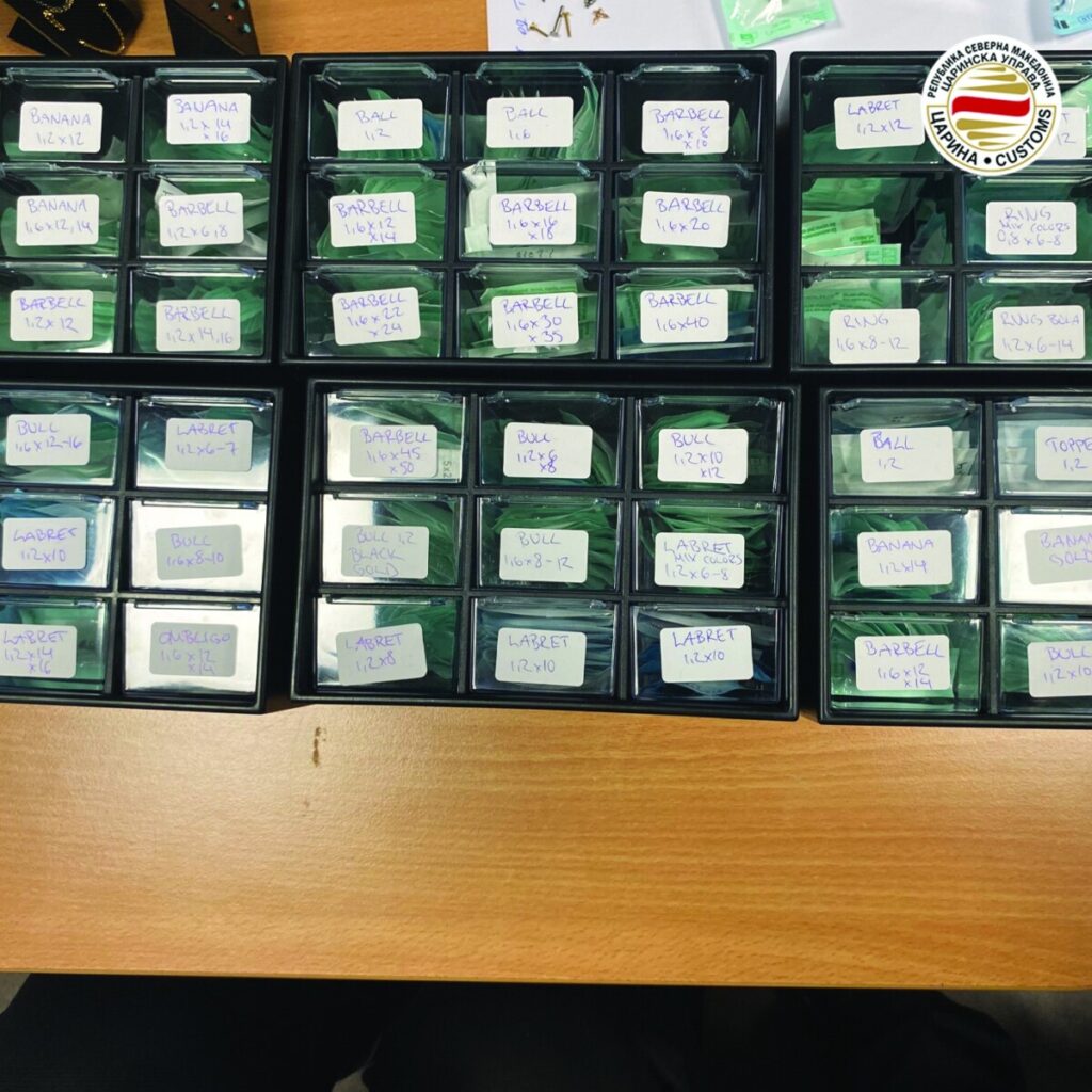 Në Aeroportin e Shkupit u kapën 1.463 pirsing titani dhe pajisje tatuazhi pa leje, përcjell TV21. Nga Drejtoria e Doganave njoftojnë se malli është sekuestruar ndërsa është kapur te një shtetas spanjo...