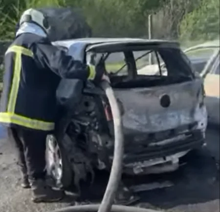 Digjen pesë automjete nën Kalanë e Shkupit pranë Vardarit